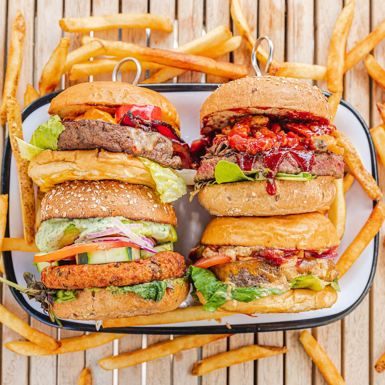 Bareburger kombiniert urbanes Flair mit nachhaltig produziertem Burger-Erlebnis. Gäste loben die saftigen Patties – insbesondere den veganen Impossible-Burger und den würzigen Bison-Burger – sowie die goldenen Pommes, die als knusprig und gut gewürzt beschrieben werden. Auch die pflanzlichen Strawberry-Coconut-Shakes sind bei veganen Gästen ein Favorit.