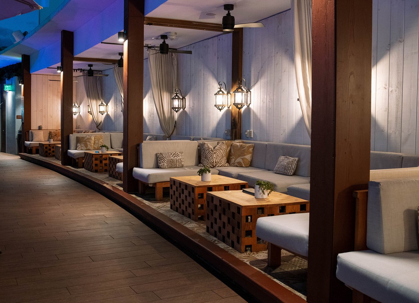 Wasserblick-Rooftop, mediterrane Small Plates & Seafood-Rohbar, handgemixte Cocktails & Sangria, Live-DJ oder Bossa-Nova-Brunch, Cabanas & Lounges, hundefreundlich