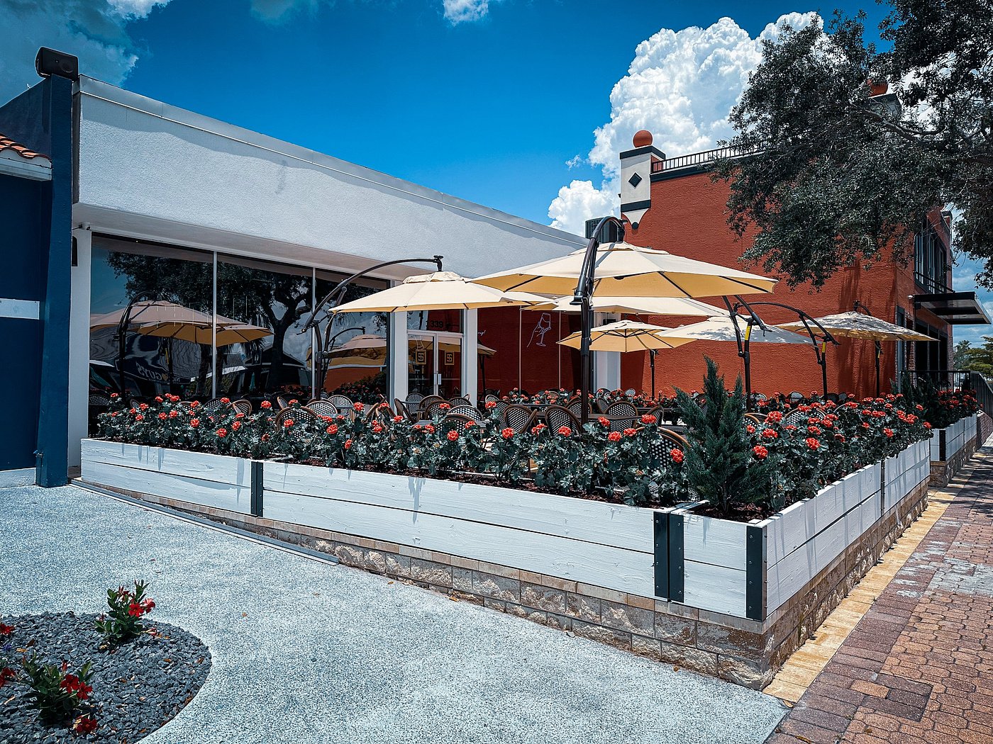 Das luftige Design und die großen Fenster schaffen eine einladende Atmosphäre, perfekt für Lunch, Dinner oder einen Sundowner. Dazu kommt eine sorgfältig kuratierte Weinkarte und kreative Cocktails, die das Erlebnis abrunden.