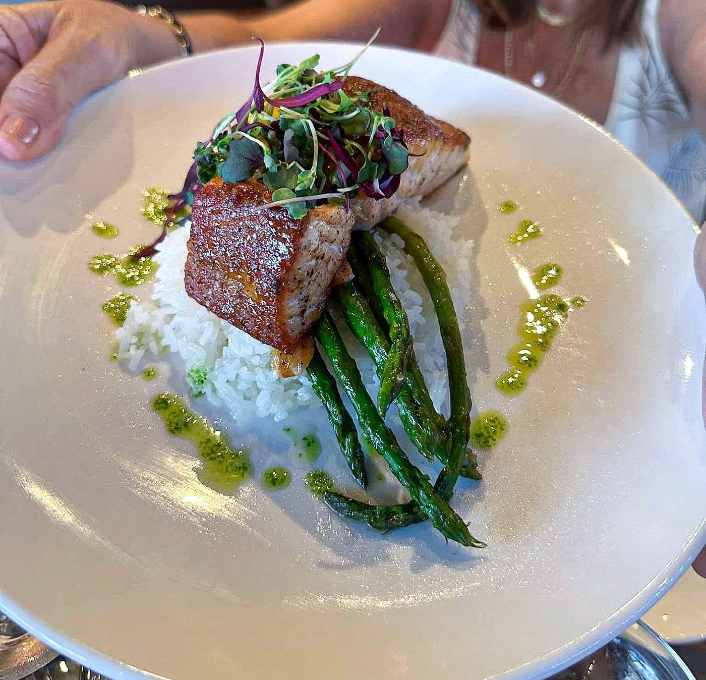 Stones Throw ist bekannt für seine moderne kalifornische Küche, die saisonale Zutaten und nachhaltige Produkte in den Mittelpunkt stellt. Von frischen Meeresfrüchten bis zu vegetarischen Bowls bietet die Speisekarte für jeden Geschmack etwas.